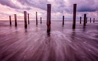 Lange sluitertijd , bij Palendorp in Petten. Deze palen symboliseren dat hier vroeger 10 huizen en een kerk gestaan hebben.