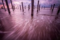 Lange sluitertijd , bij Palendorp in Petten. Deze palen symboliseren dat hier vroeger 10 huizen en een kerk gestaan hebben.