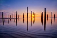 Maar vandaag de dag is deze verzameling aan palen een prachtig onderwerp voor een zonsondergangfoto. Dan is het ook nog eens mooi dat je door het wateroppervlak het ribbelpatroon van de zandbodem kunt ontwaren. Deze foto zit bomvol sfeer!