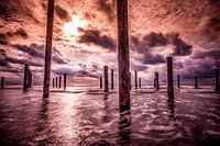 Palendorp bij Petten.Het Palendorp van Petten is een kunstwerk en monument, bestaande uit een groot aantal palen op de grens van het land en de zee. Het is een herinnering aan de overstroming die Petten enkele honderden jaren geleden trof en nagenoeg het hele dorp wegsloeg. Dit vertelde ons een wandelaar op het strand, die de Zuidwesterstorm trotseerde