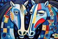 Details: paarden, abstract, kleurrijk, blauw, rood, geel, zwart, wit, ogen, manen