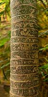 De inkervingen in de stammen van de bomen die een mooi grafisch patroon laten zien alsof het met inkt is gedaan.