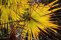 Palmbladeren in het tegenlicht van een park in Dartmouth (Devon, Engeland).
