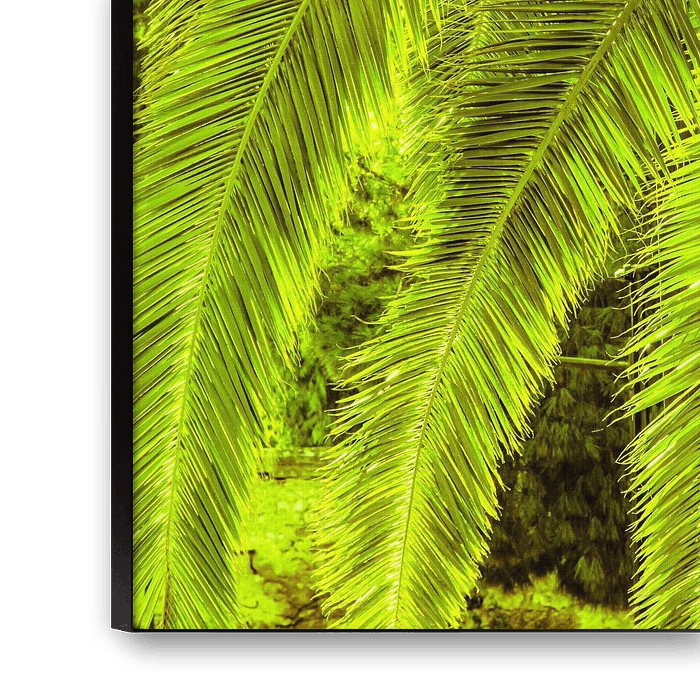 Foto heldergroene palmbladeren van de dadelpalm tegen het licht