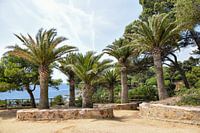 Palmbomen in Spanje (Lloret de Mar), met op de achtergrond de zee