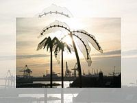 Palmen van staal - sculptuur in Hamburg St. Pauli voor het grandioze decor in de haven van Hamburg.