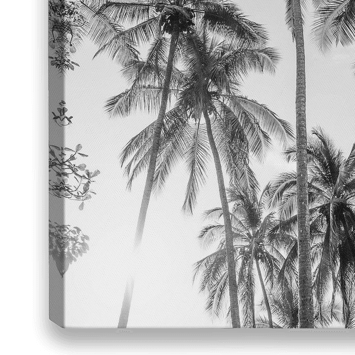 Koop de foto Palmbomen in een Tijdloze Tropische Hemel in Zwart-Wit van Femke Ketelaar als print op canvas, aluminium dibond, (ingelijste) fotoprint, behang en ArtFrame. Voor jou op maat geprint in Fine-Art kwaliteit.