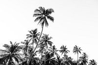Deze zwart-wit foto is gemaakt aan het strand van Trincomalee in Sri Lanka. Het beeld toont een groep palmbomen, met daarachter alleen de lucht. Door het ontbreken van kleur komt de vorm van de bomen duidelijk naar voren. De dunne stammen en uitwaaierende bladeren zijn scherp afgetekend tegen de lichte lucht. De contrasten in het beeld zijn zacht, maar geven toch een duidelijk onderscheid tussen de donkere silhouetten van de palmbomen en de lichtere achtergrond.