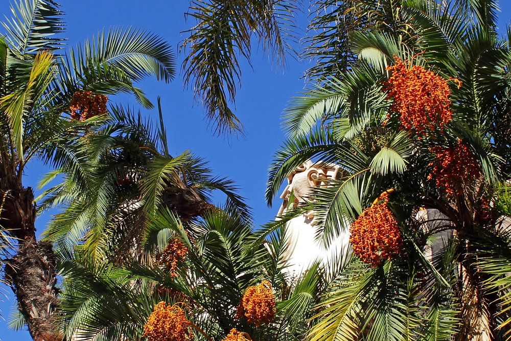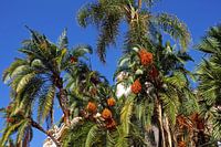 Palmbomen met blauwe lucht achtergrond.