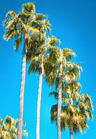 Wuivende groene palmbomen steken af tegen de prachtige blauwe lucht.
