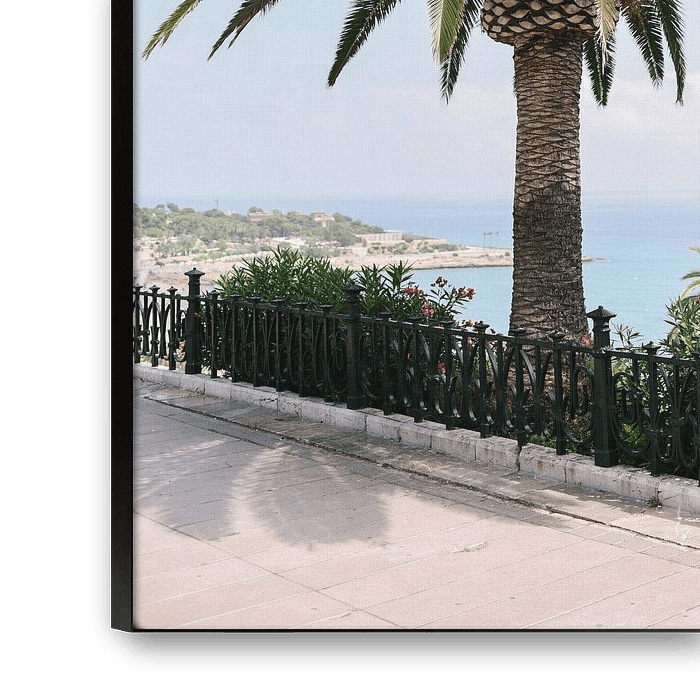 Geniet van het ultieme vakantiegevoel met deze foto van een palmboom aan de kust van Tarragona, Spanje. Met de blauwe zee op de achtergrond straalt deze print rust, zon en mediterrane vibes uit. Perfect als wanddecoratie voor iedereen die droomt van de zee, zon en zuidelijke sferen, ideaal voor thuis of op kantoor.