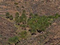 Gezicht op een klein woud van palmbomen in een afgelegen vallei in het westen van het eiland Gran Canaria, Canarische Eilanden, Spanje op een zonnige dag.