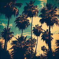 Prachtige afbeelding van tropische palmbomen in de zon. Contrasterend kleurgebruik in petrol, beige, zwart en bruin. Passend bij diverse stijlen en trends.