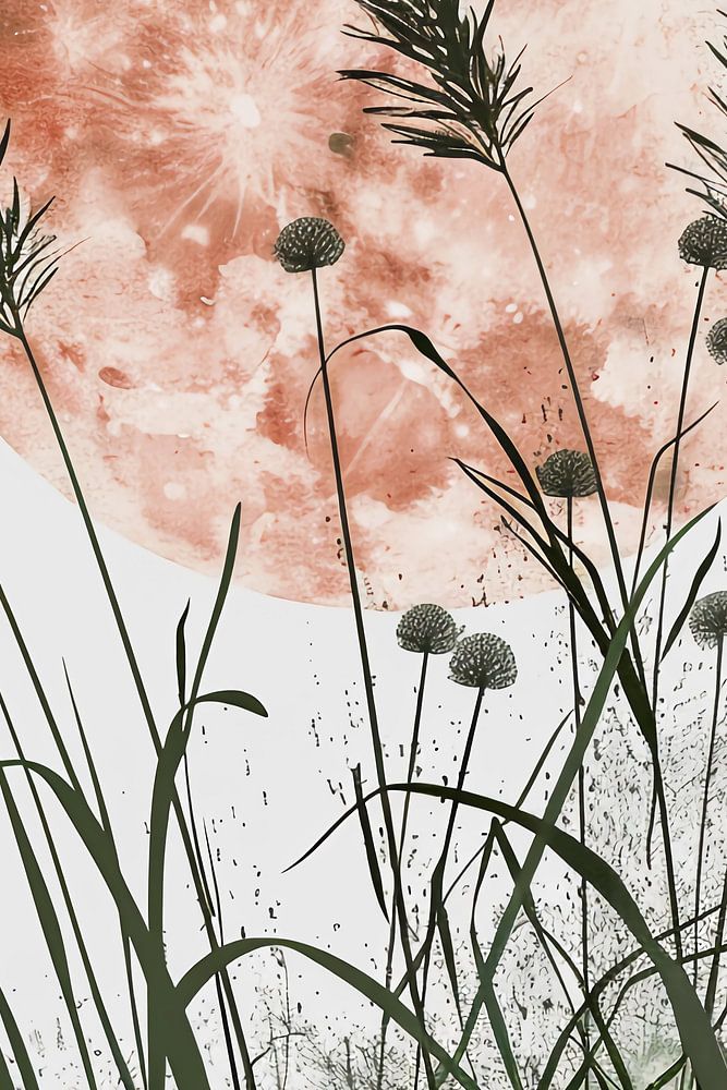 Zonsondergang en pampagras modern minimalistisch kunstwerk