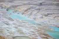 Laat je betoveren door het surrealistische landschap van Pamukkale, waar helderblauw thermisch water sierlijk over glinsterende kalkterrassen stroomt. Deze foto vangt de magische rust van een plek die al eeuwenlang reizigers en pelgrims aantrekt. Een uniek natuurwonder én Werelderfgoed, perfect vastgelegd voor wie droomt van verre…