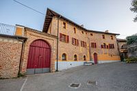 Pand in Mombaruzzo met groet rode poort