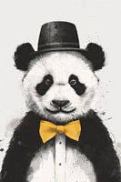 Deze stijlvolle illustratie toont een panda in elegante kleding, waaronder een zwarte hoge hoed en een geel strikje. De mix van gedetailleerde tekeningen en moderne accenten maken van dit kunstwerk een echte blikvanger. Perfect voor woonkamers, kantoren of kinderkamers, deze humoristische en unieke afbeelding zal een vleugje verfijning…