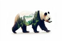 Een majestueuze panda, wiens lichaam wordt afgewisseld door weelderige bossen en glooiende heuvels, symboliseert de harmonieuze combinatie van natuur en wilde dieren. De zachte kleuren en gedetailleerde afbeelding nodigen uit tot dromen. Dit kunstwerk is ideaal voor de woonkamer, waar het een rustgevende, inspirerende sfeer creëert en aanzet tot gesprekken.