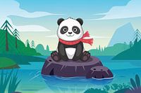 Deze schattige panda straalt vriendelijkheid en warmte uit terwijl hij met zijn vrolijke rode sjaal op een rots in een serene omgeving zit. Met een achtergrond van een rustige rivier, groene heuvels, en een zachte blauwe lucht, roept het ontwerp een gevoel van rust en vreugde op. De digitale kunststijl maakt het speels en perfect voor kinderkamers, werkplekken, of iedereen die een beetje extra kleur en een glimlach wil toevoegen aan hun ruimte. De frisse, minimalistische stijl en het gebruik van heldere kleuren maken het ontwerp zowel modern als tijdloos. Ideaal voor liefhebbers van dieren en natuur, en een prachtige aanvulling voor elke ruimte die een vrolijke, energieke uitstraling kan gebruiken.