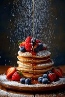 Koop de foto Pannenkoeken met bessen en siroop van Poster Art Shop als print op canvas, aluminium dibond, (ingelijste) fotoprint, behang en ArtFrame. Voor jou op maat geprint in Fine-Art kwaliteit.
