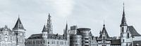 Zwart-wit foto Panorama van historische gebouwen in het stadscentrum met de torenspits van de Onze-Lieve-Vrouwekathedraal in Antwerpen, Vlaanderen, België