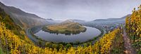 Een schitterend stuk Duitsland. Deze bocht van rivier De Moezel ligt nabij het plaatsje Bremm (deelstaat Rijnland-Palts, Landkreis Cochem-Zell, Duitsland). Vanaf een wandelpad door een wijngaard hadden we schitterend zicht op deze bocht. Met de herfstkleuren en de mist een schitterend stukje Duitsland!