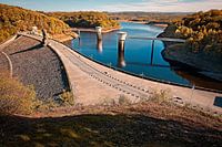 Panorama foto bij de uitzichttoren van de Gileppe stuwdam in de buurt van Jalhay in de Belgische Ardennen.