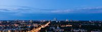 Een panorama van het uitzicht op Groningen Zuid-Oost. Aan de linkerkant zicht richting de Rivierenbuurt en een deel van de Herewegbuurt met aan de horizon de Tasmantoren en de woontorens van de Kop van Oost. Verder naar rechts het Julianaplein met in het verlengde van de ringweg het Menzis-gebouw en de kantoortoren van DUO en de Belastingdienst. Uiterst rechts de zendmast van RTV-Noord.