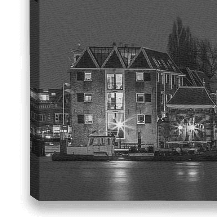 Koop de foto Panorama Grote Kerk in Dordrecht in zwart-wit - 1 van Tux Photography als print op canvas, aluminium dibond, (ingelijste) fotoprint, behang en ArtFrame. Voor jou op maat geprint in Fine-Art kwaliteit.