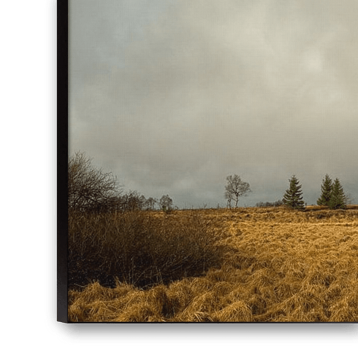 De Hoge Venen. de zon scheen laag onder de dreigende wolken door en kleurde het dorre gras goudgeel. De Hoge Venen zijn een onderdeel van het Natuurpark Hoge Venen-Eifel. De Hoge Venen liggen op een hoogvlakte, grotendeels in de Ardennen en voor een kleiner deel in de Eifel. Het ligt in Wallonië in oostelijk België, daar in de provincie Luik, en in een stukje aangrenzend Duitsland. Het geheel beslaat ongeveer 4500 ha. Deze foto is gemaakt in het veengebied nabij Baraque Michel. De Baraque Michel is de naam van een herberg en de omliggende hoogveenvlakte in de Belgische Ardennen. Het is een langlaufskigebied en is met 674 m boven de zeespiegel een van de hoogste toppen van België. Voor de Eerste Wereldoorlog was het een grenspunt met Pruisen en Duitsland en de hoogste top van België.