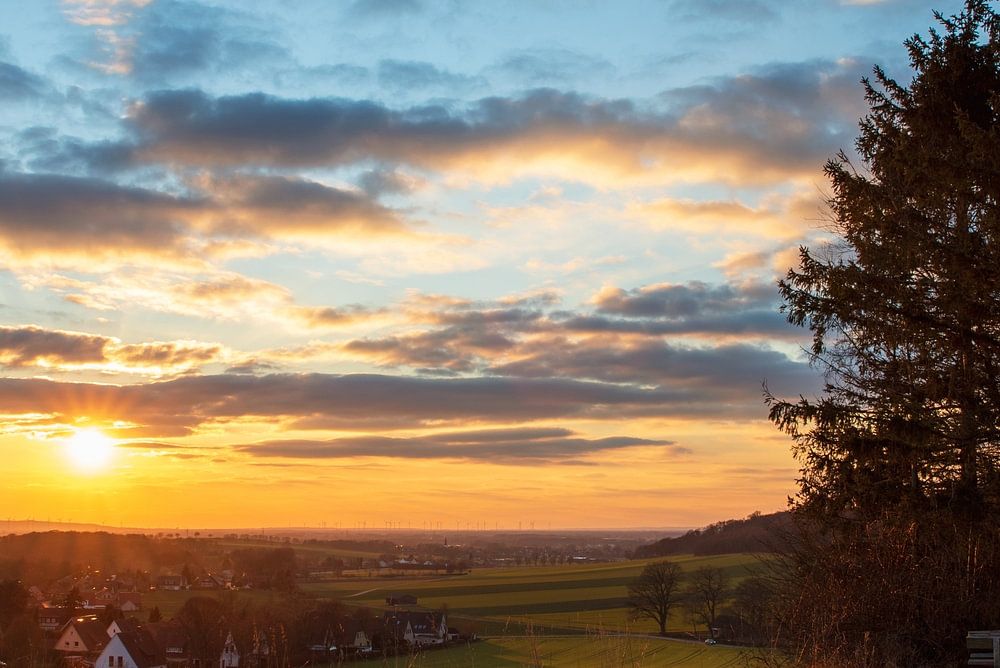 Zonsondergang in de vallei. Romantische avondsfeer op de berg.