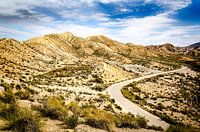 Panorama Weg door Landschap Eenzaamheid Tabernas Woestijn in Almeria Andalusië Spanje