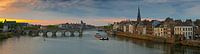 Panorama Maastricht vanaf de Maas met zicht op de Sint Servaasbrug tijdens zonsondergang.