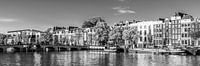 Zwart-wit foto Panorama Magere Brug en woonboot in Amsterdam, Nederland.