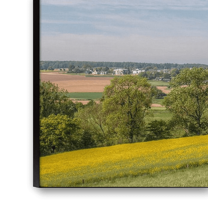 Panorama van Mamelis en Vijlen in Zuid-Limburg tijdens het voorjaar met zijn koolzaadvelden