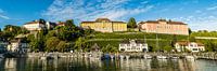 Panoramisch uitzicht op de haven en het kasteel van Meersburg aan het Bodenmeer in Duitsland met zeilboten in de zomer