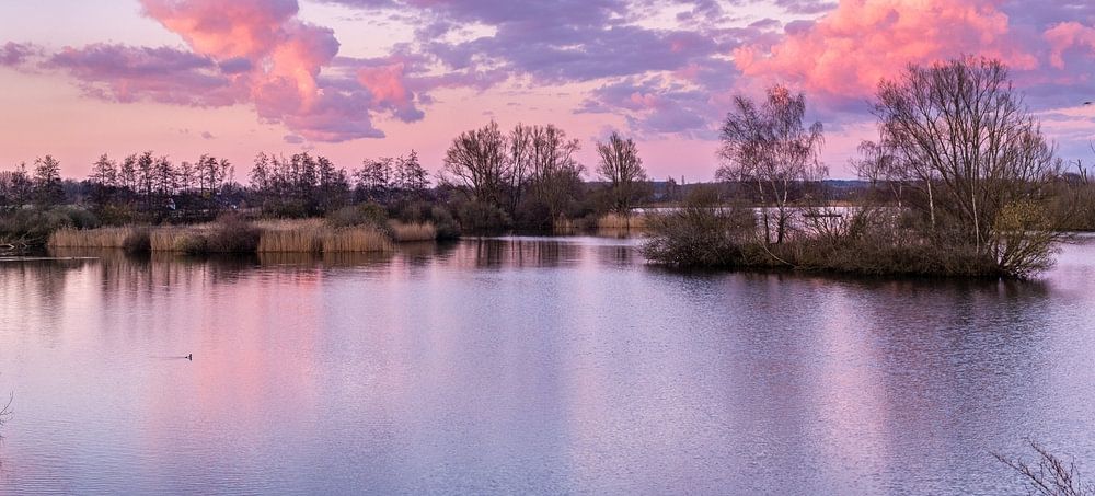 Avond panorama van het natuurreservaat "Molsbroek" in Lokeren, België