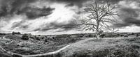 Panorama gemaakt op de Posbank nabij Velp. Op de foto een oude boom met een dreigende lucht in aantocht. Omgezet in zwart-wit.