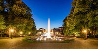 Fontein op de Prinzregent-Luitpold-Terrasse of Luitpoldterrasse en de Prinzregentenstraße in de avond, Bogenhausen, München, Beieren, Duitsland