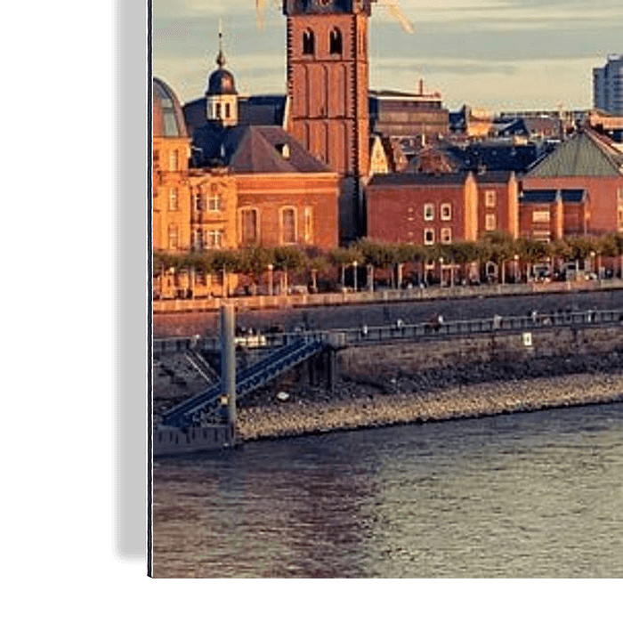Panorama Rijnoeverpromenade en oude binnenstad in Düsseldorf aan de Rijn Duitsland