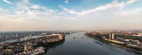 Panorama van Rotterdam en de maas richting de maasvlakte vanaf een hoog gebouw gefotografeerd op de kop van zuid.
