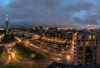 Panorama foto tijdens het blauwe uur in Rotterdam vanaf Little C
