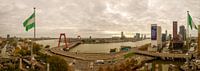 Panorama van de rivier de Maas van oost (Bolnes) tot west (Kop van Zuid). Met Willemsbrug, Willemswerf en havens