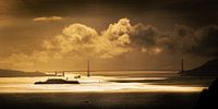 Panorama San Francisco Bay met Golden Gate Bridge en Alcatraz in mist en zonlicht Californië USA