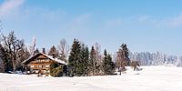 Panorama Winterlandschap met Sneeuw Bomen en Boerderij in Allgäu Duitsland