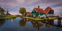 Zonsondergang op de Zaanse Schans, een bekende toeristische hotspot in Zaandijk, in de Nederlandse provincie Noord-Holland, niet ver van Amsterdam.