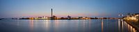Panorama van de skyline van Zwijndrecht. Zwijndrecht is onderdeel van de Drechtsteden en is via de brug die rechts te zien is verbonden met Dordrecht van waar de foto is genomen. Je ziet hier de bedrijven langs de Oude Maas. De foto is genomen tijdens de schemering net na zonsondergang.