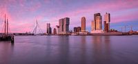 Panorama van de cruiseterminal op de kop van zuid met een oorlogsbodem op de voorgrond.