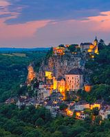 Een verticale 4:5 foto van een avond tijdens zonsondergang bij Rocamadour, een stad en bedevaartsoord in Frankrijk.