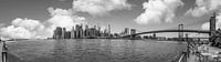 Panorama foto van downtown Manhattan met de Brooklyn bridge op een zonnige dag in New York zwart wit